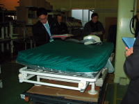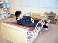 高齢者の方の徘徊を予防するためのセンサーマットやカメラにて状況を確認するタイプなどがあります。 ・会話が出来るものもあり実際に、やり取りを行ってみました。 ・新商品の車いす用センサーというものもあり、車いすからの立ち上がりに反応し転倒を防ぎます。 ・施設用タイプは、現在あるナースコールと一緒に使用できるようになっています。 ・一人暮らしの方に安心な緊急通話システムもあり、ボタンを押すと設定した番号につなぎます。(相手が不在で緊急時には119番にもつなぐことも可能です)