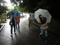 外はどしゃ降り…